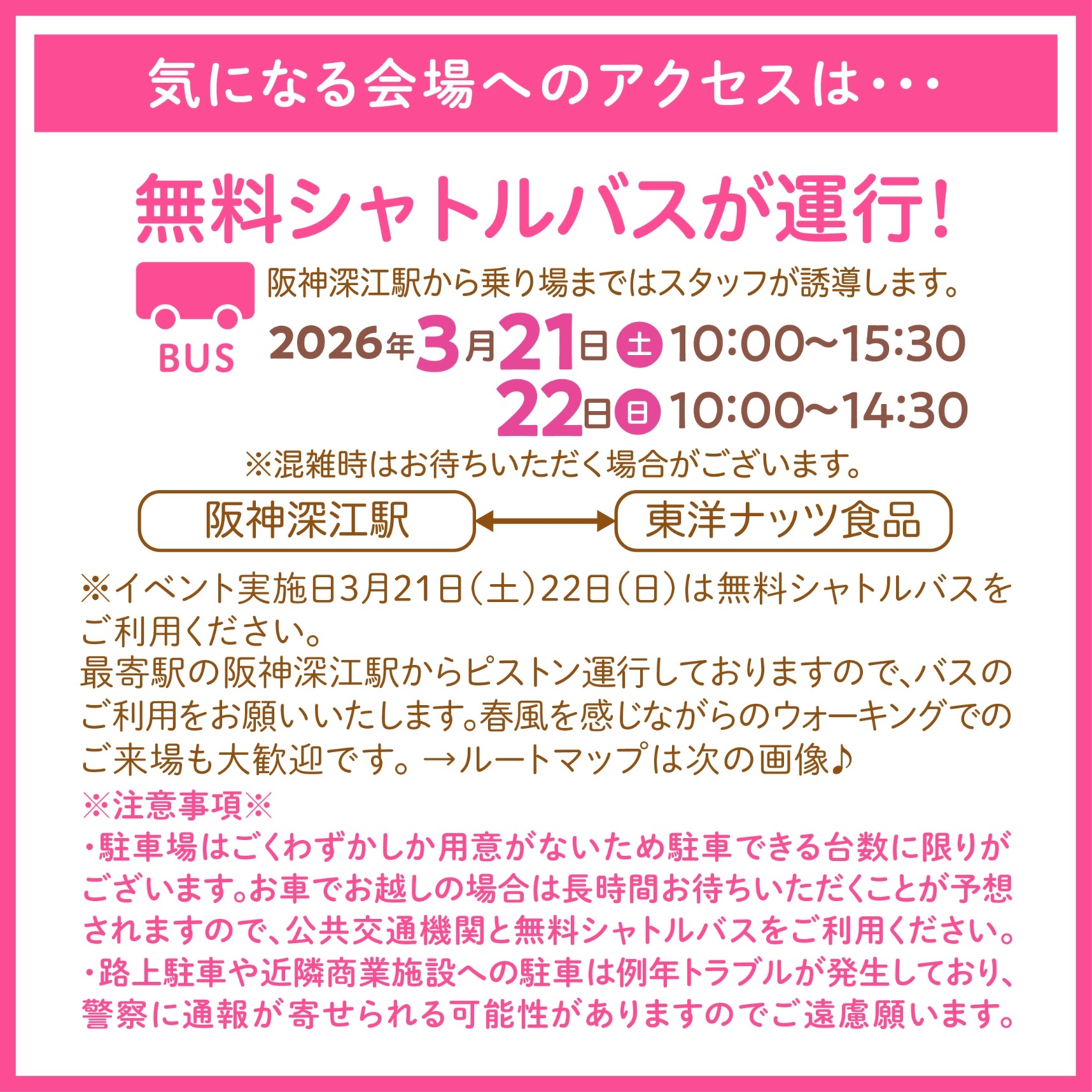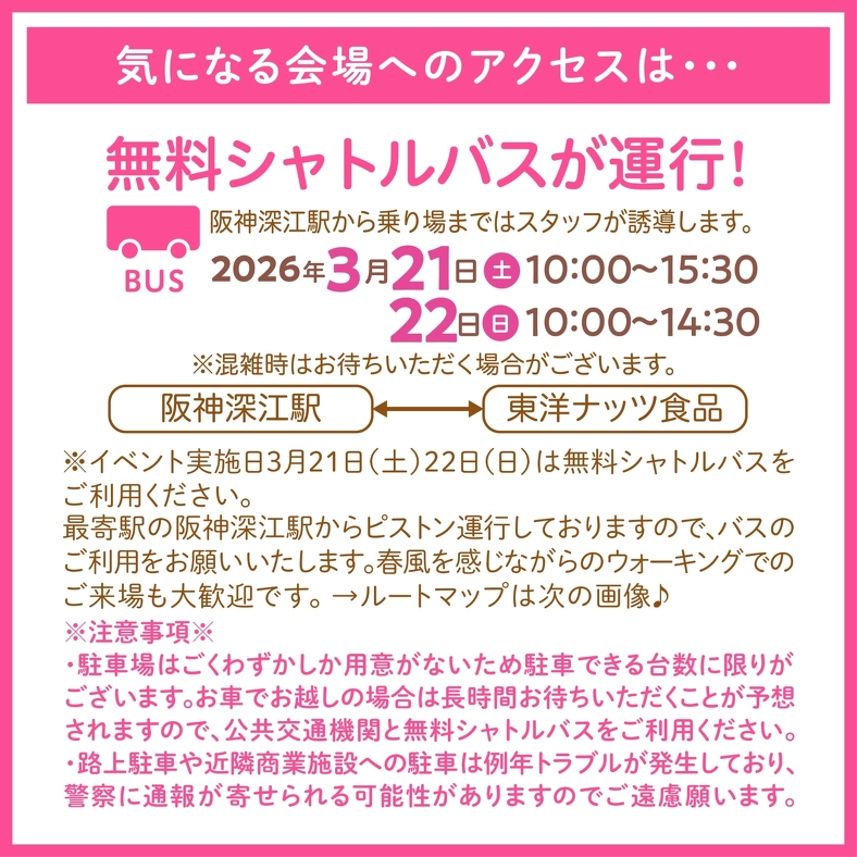 イベント実施日 3月21日(土)22日(日)は無料シャトルバスをご利用ください。