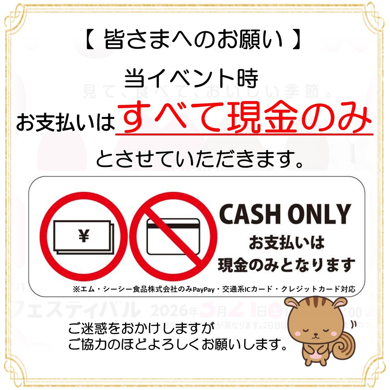 当イベント時の支払方法についてのお願いのご連絡です。