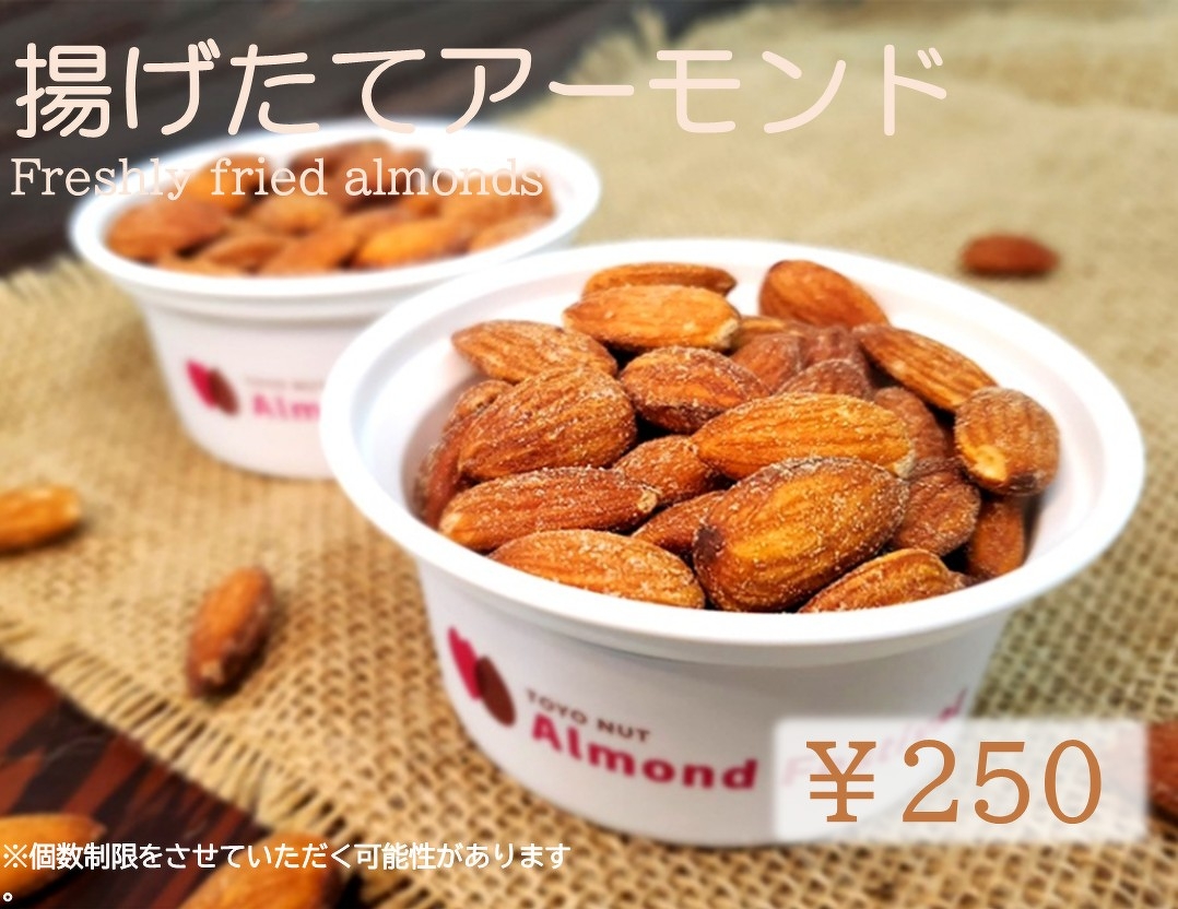 できたての美味しさが楽しめる揚げたてアーモンドです。