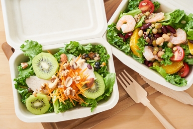 昼食: サラダにナッツを加えて食感をプラス。