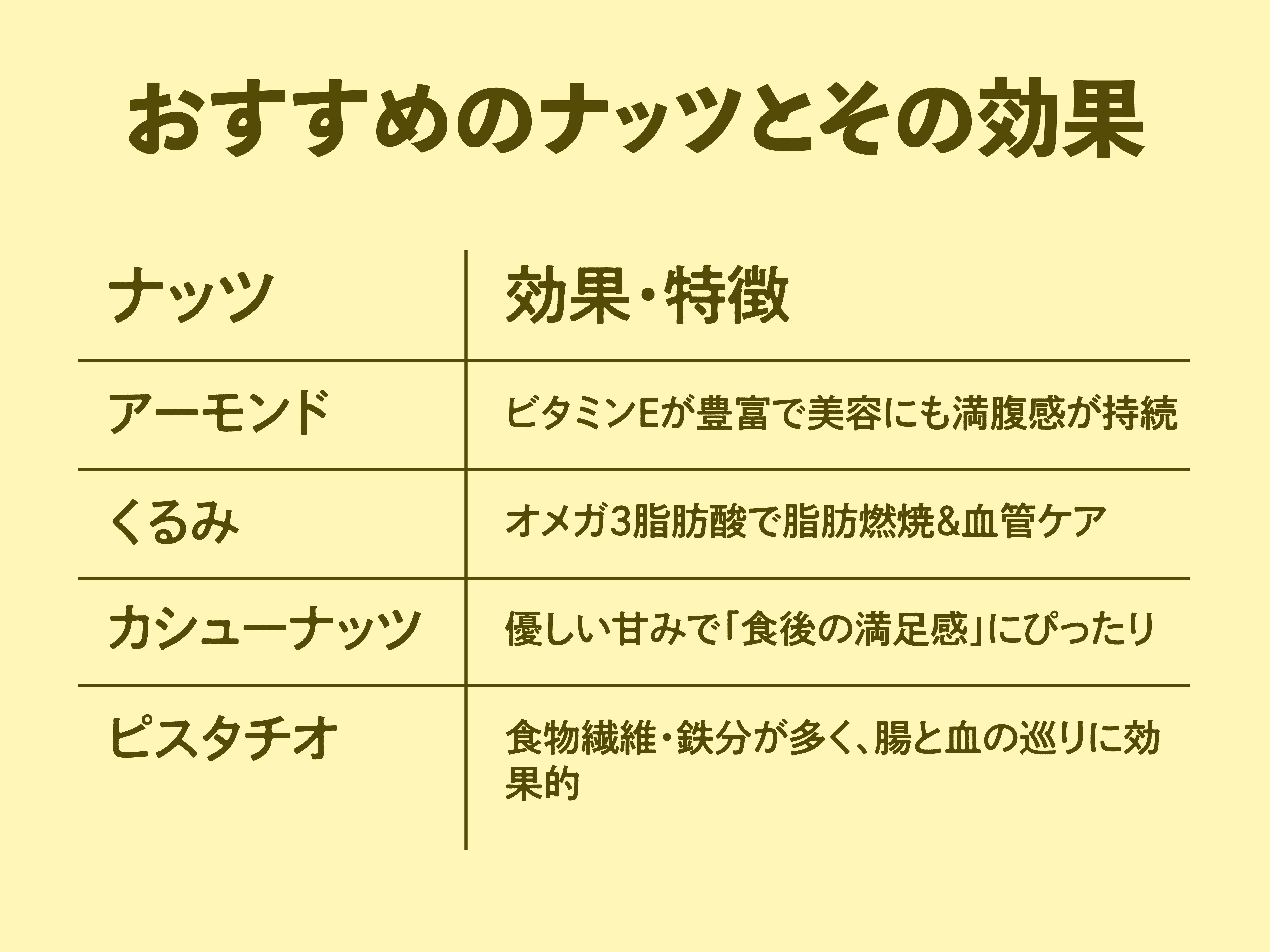 そこにナッツという“最後のひとくち”が加わることで、「満腹ではないけれど満足感はある」という理想の着地点がつくれます。