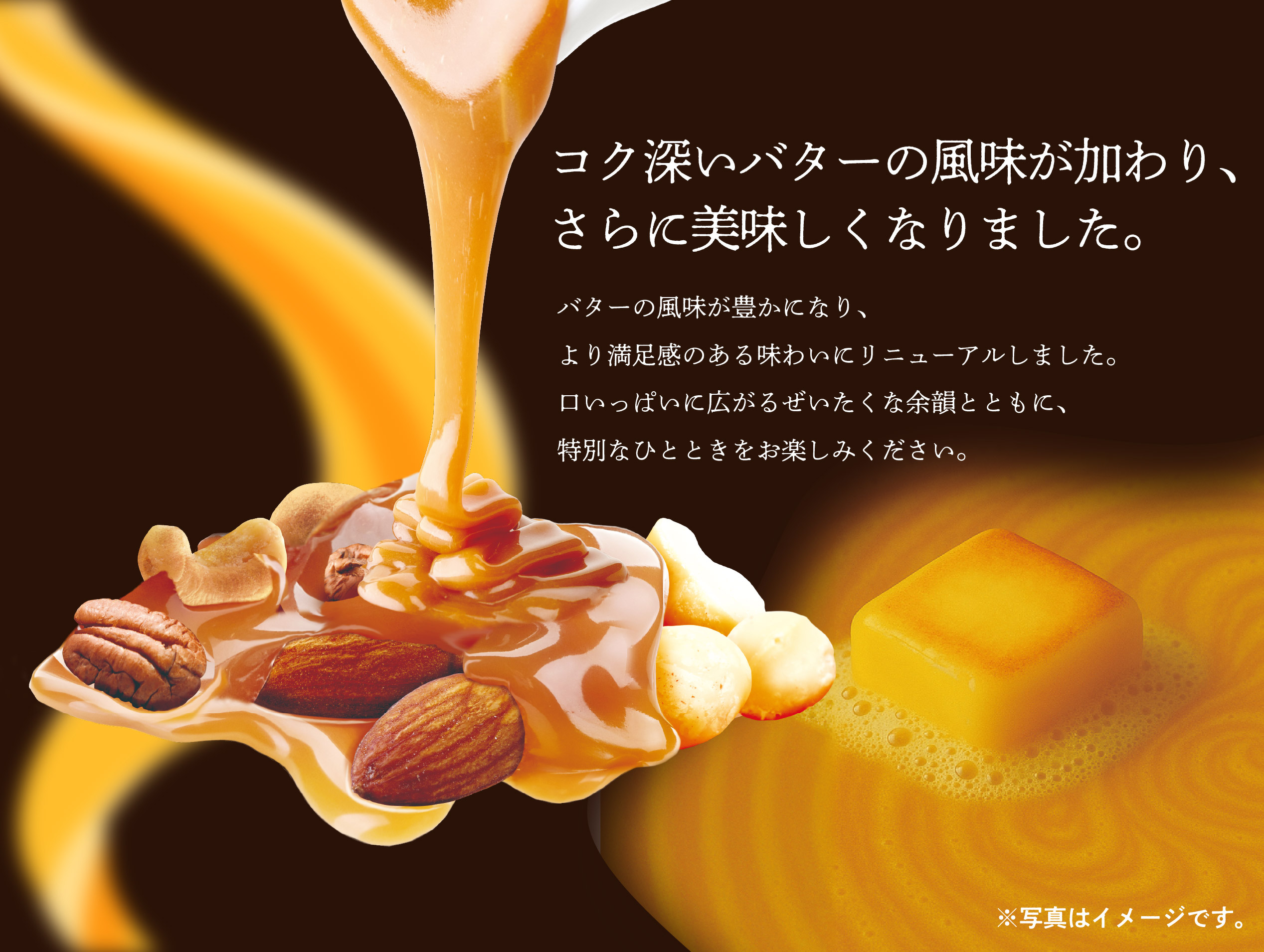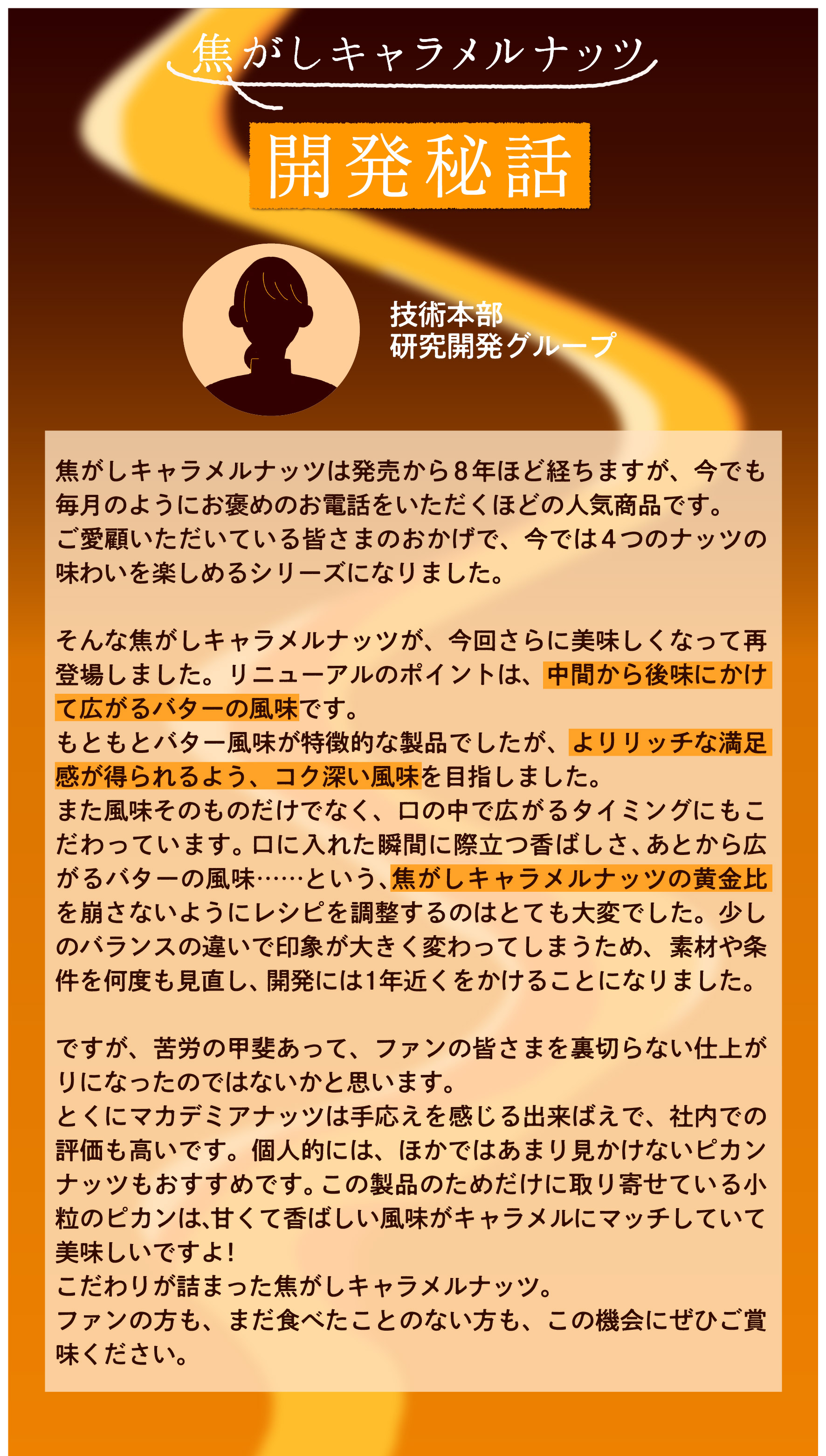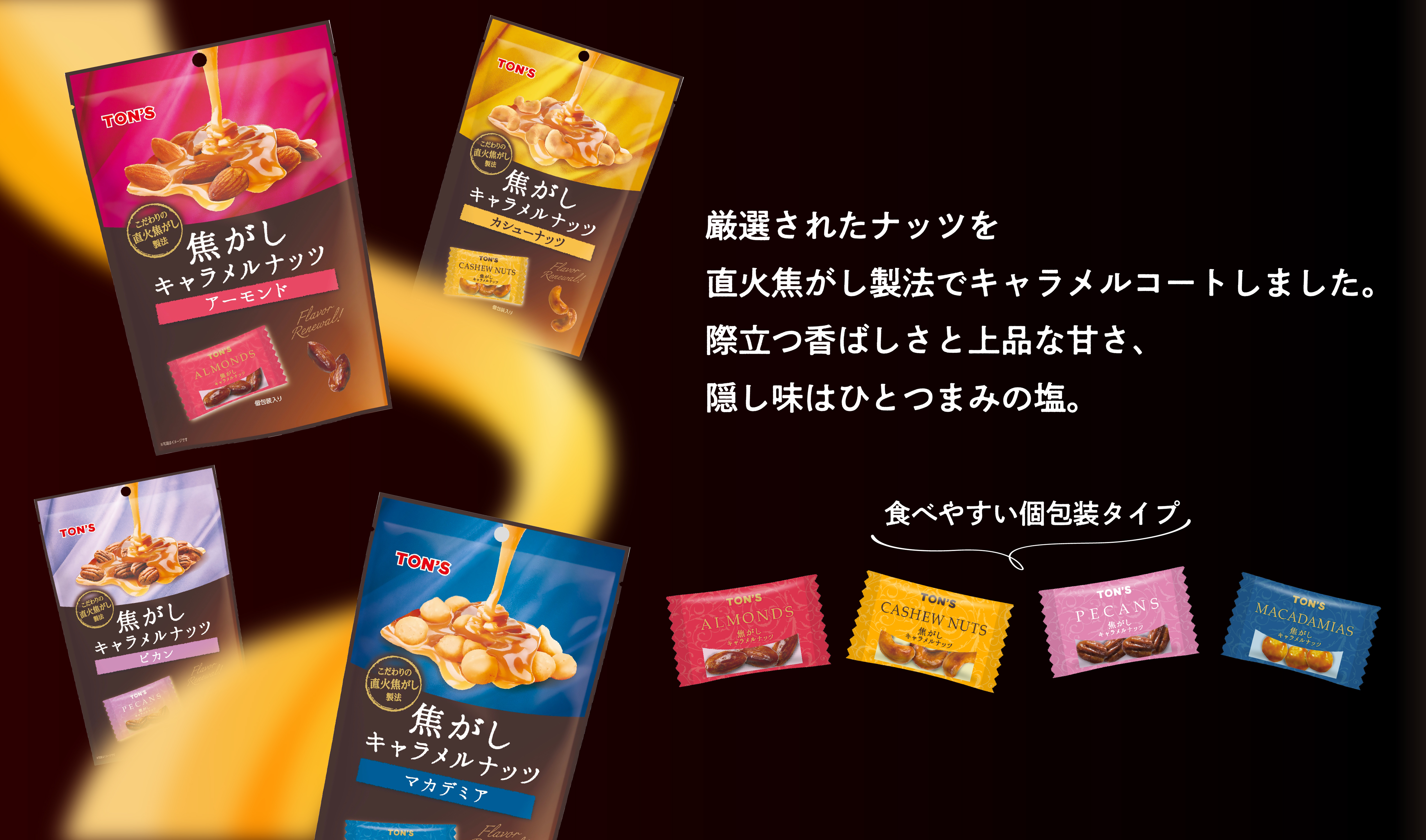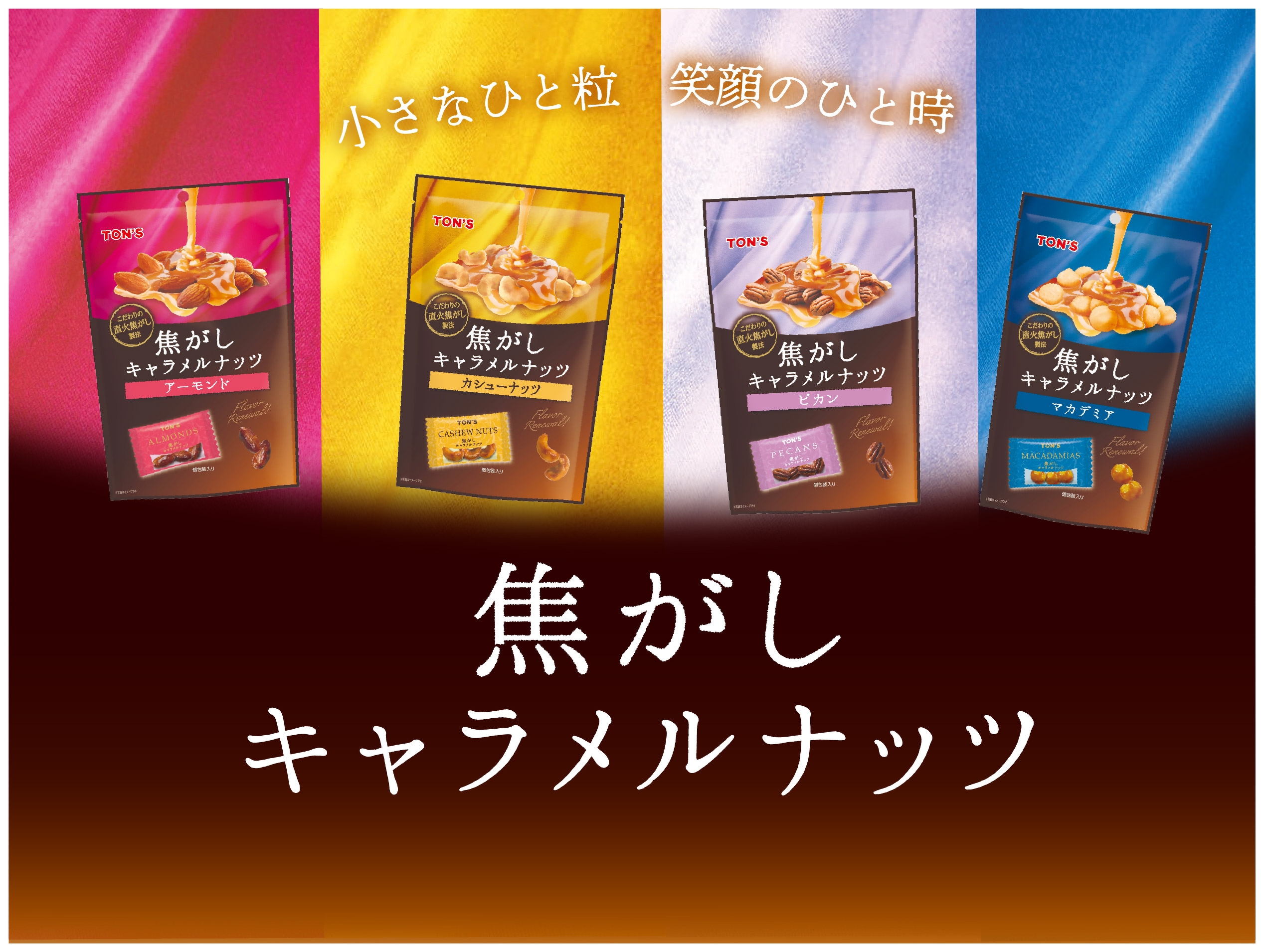 関連記事 ◉「焦がしキャラメルナッツ」人気シリーズ誕生の裏側は実は…!【前編】 ◉「焦がしキャラメルナッツ」人気シリーズ誕生の裏側は実は…!【後編】 ◉ 簡単!子供とおうちで楽しむお菓子作り【マンディアン】 東洋ナッツ食品 アーモンド カシューナッツ マカデミア ピカン キャラメル キャラメルコート 焦がしキャラメルナッツ おすすめ記事 ヘーゼルナッツの話 ヘーゼルナッツとは?世界三大ナッツと呼ばれるナッツをご紹介! その他の製品 7種類のナッツが1袋に!『ナナナッツ』 ナッツのこと 【保存版】こんな時にはこのナッツ!美容や体のお悩み別ナッツ6選 よく読まれている記事 4503 栄養士だより ナッツって1日何粒まで食べていいの?正しいナッツの適正量を知りましょう 3630 クルミの話 クルミが身体にいい理由とは?クルミの栄養と1日の摂取目安量をご紹介します 2574 ドライフルーツのこと レーズンはどうして体にいいの?小さな一粒に詰まった栄養とその効能について 1671 ナッツ雑学 ナッツについてもっと知りたい!種類や特徴を詳しくご紹介します 1370 その他の製品 焦がしキャラメルナッツ アーモンド 105g 注目タグ ダイエット クルミ アーモンドの育て方 栄養 美容 アーモンド アレンジレシピ 東洋ナッツ食品 クルミ くるみ