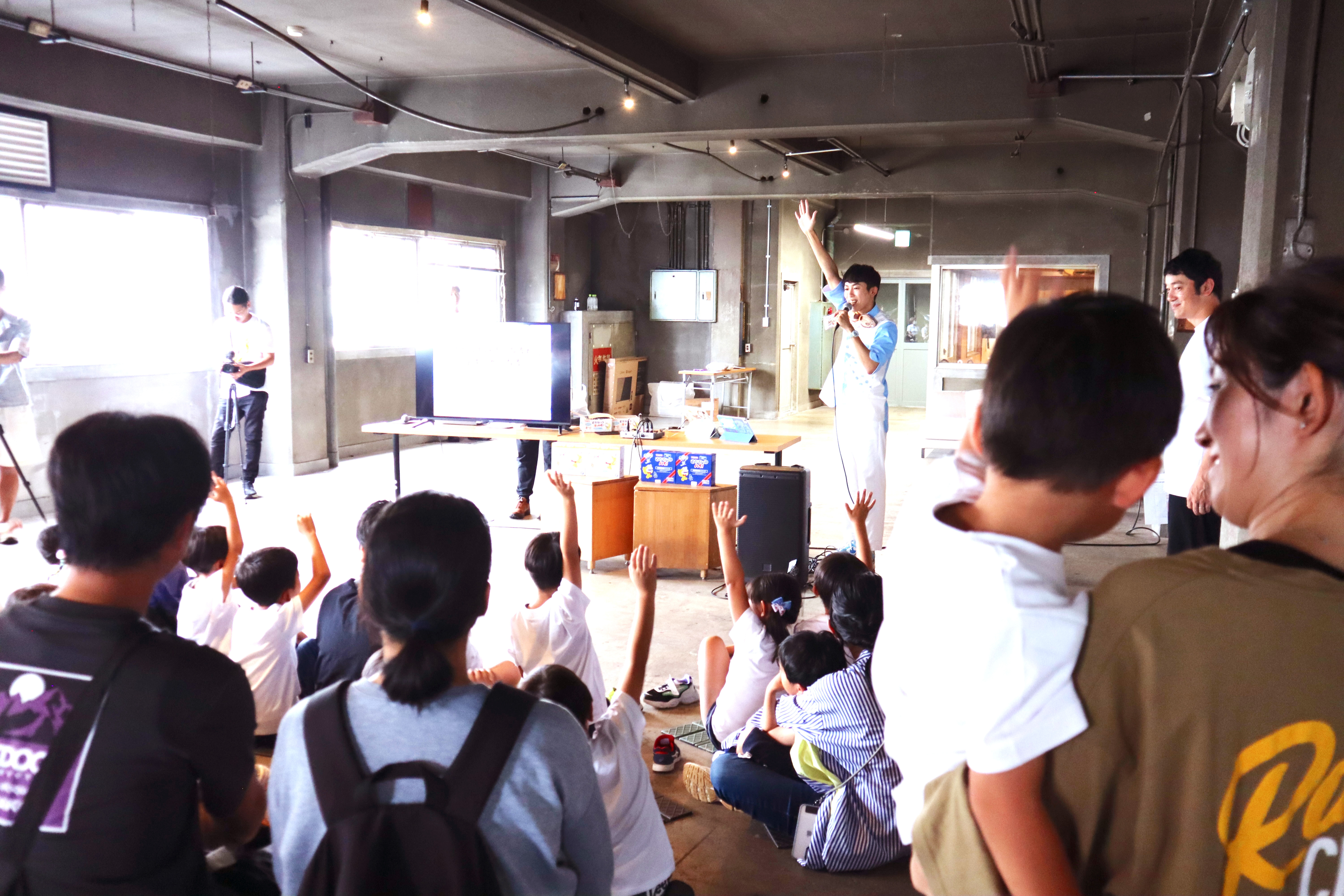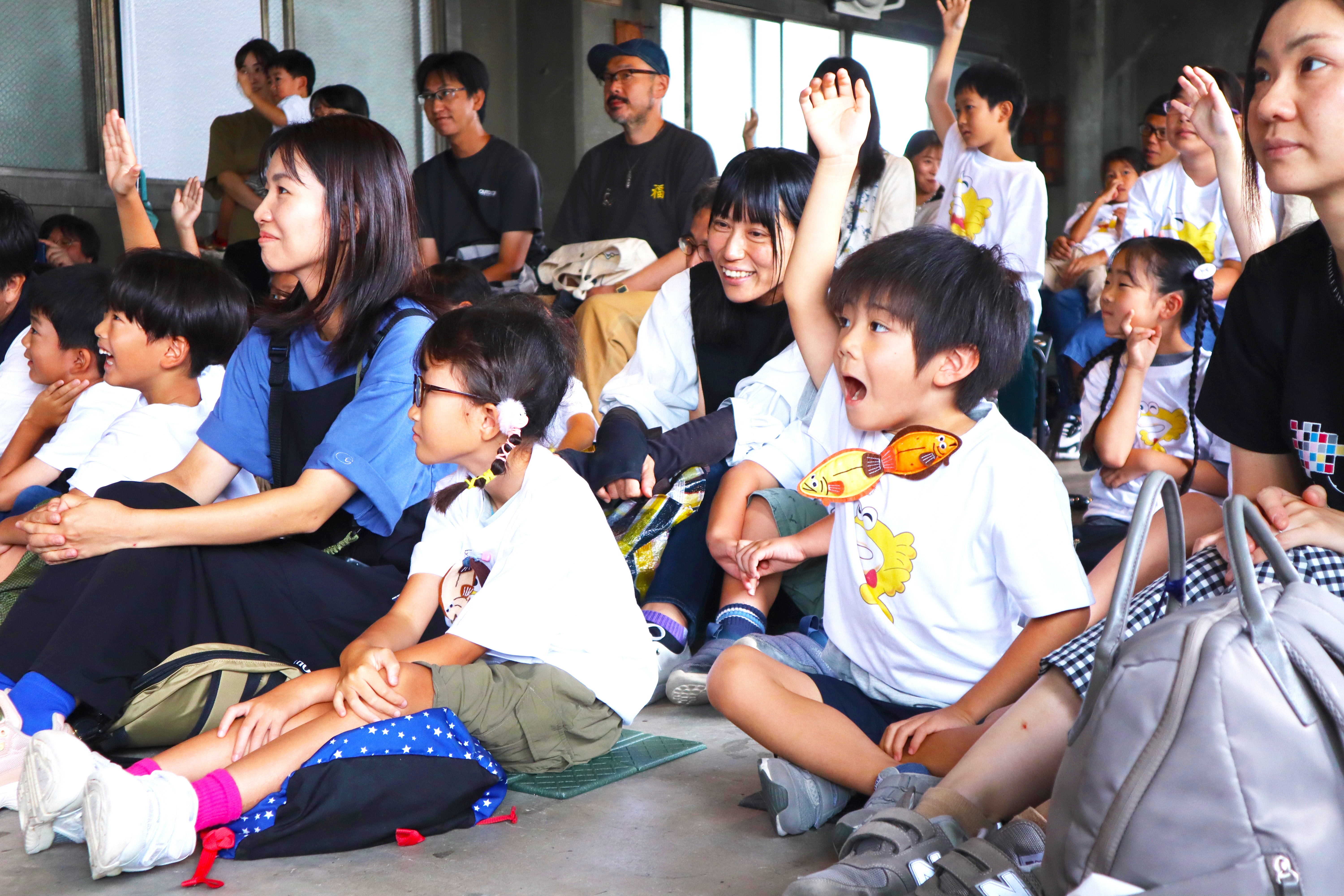 続いてスタートしたクイズショーでは、イワシや海の生き物に関する質問が出題され、子どもたちは一斉に手を挙げて答えようとするなど、大盛り上がりとなりました。中には、大人も驚くような知識や意外な回答を披露する子どももおり、会場からは「へえ〜!」と感心の声が上がる場面も。単なる遊びの時間ではなく、子どもたちの学びの力強さが感じられるひとときとなりました。