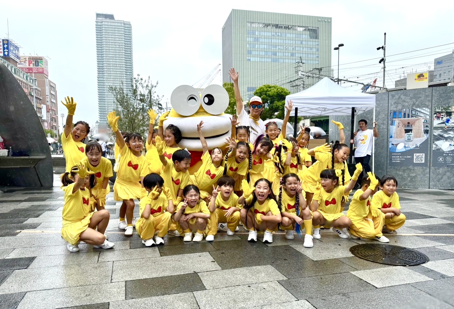 なんと、キッズダンサーたちもサプライズ登場!雨の中でしたが、元気いっぱいの素敵なパフォーマンスを披露し、会場の雰囲気を大いに盛り上げてくれました。